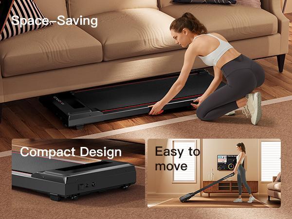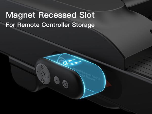- DISEÑO PORTÁTIL Y CON RANURA MAGNÉTICA: El diseño portátil y compacto con ruedas permite guardarlo fácilmente debajo de escritorios, sofás o apoyado contra la pared, lo que le permite ahorrar valioso espacio. Además, la parte posterior del control remoto está equipada con imanes, que se pueden fijar a la cinta de correr para evitar que se pierda cuando no esté en uso.