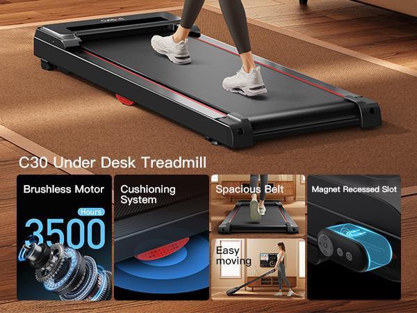 Cinta de correr bajo el escritorio UMAY Fitness, caminadora con pantalla grande de alta definición para el hogar, pequeña, silenciosa sin escobillas de 2.5 HP, capacidad de 120 kg (265 libras).