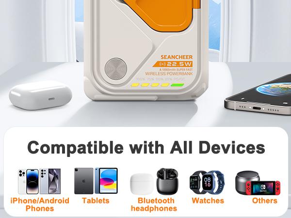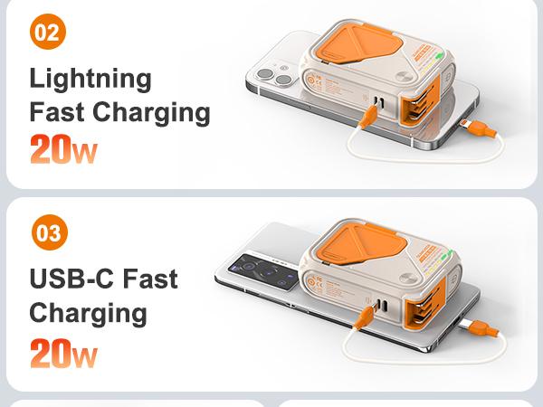 【Charge 3 Devices Simultaneously】Designed to meet your multi-device needs, this power bank features multiple ports, including Lightning, Type-C, USB, and wireless magnetic charging. Charge up to 3 devices at once—perfect for your smartphone, tablet and laptop—making it ideal for busy, tech-savvy users.