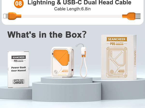 【2-in-1 Type-C to Lightning Cable】Enjoy seamless charging with the included Type-C to Lightning cable, compatible with both Apple and a wide range of Android devices. This 2-in-1 design keeps cables neat and tangle-free. The cable is attached neatly to the lanyard, providing quick access and tidy storage.