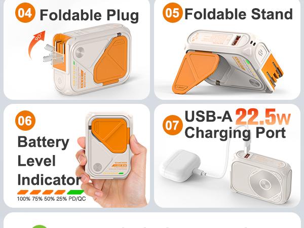 Foldable AC Plug】With its built-in folding AC plug, this magnetic power bank allows you to charge directly from any outlet without needing extra cables. The compact, foldable design makes it easy to carry and store, while the handy lanyard lets you effortlessly hang it from your bag or carry it by hand, keeping it within easy reach.
